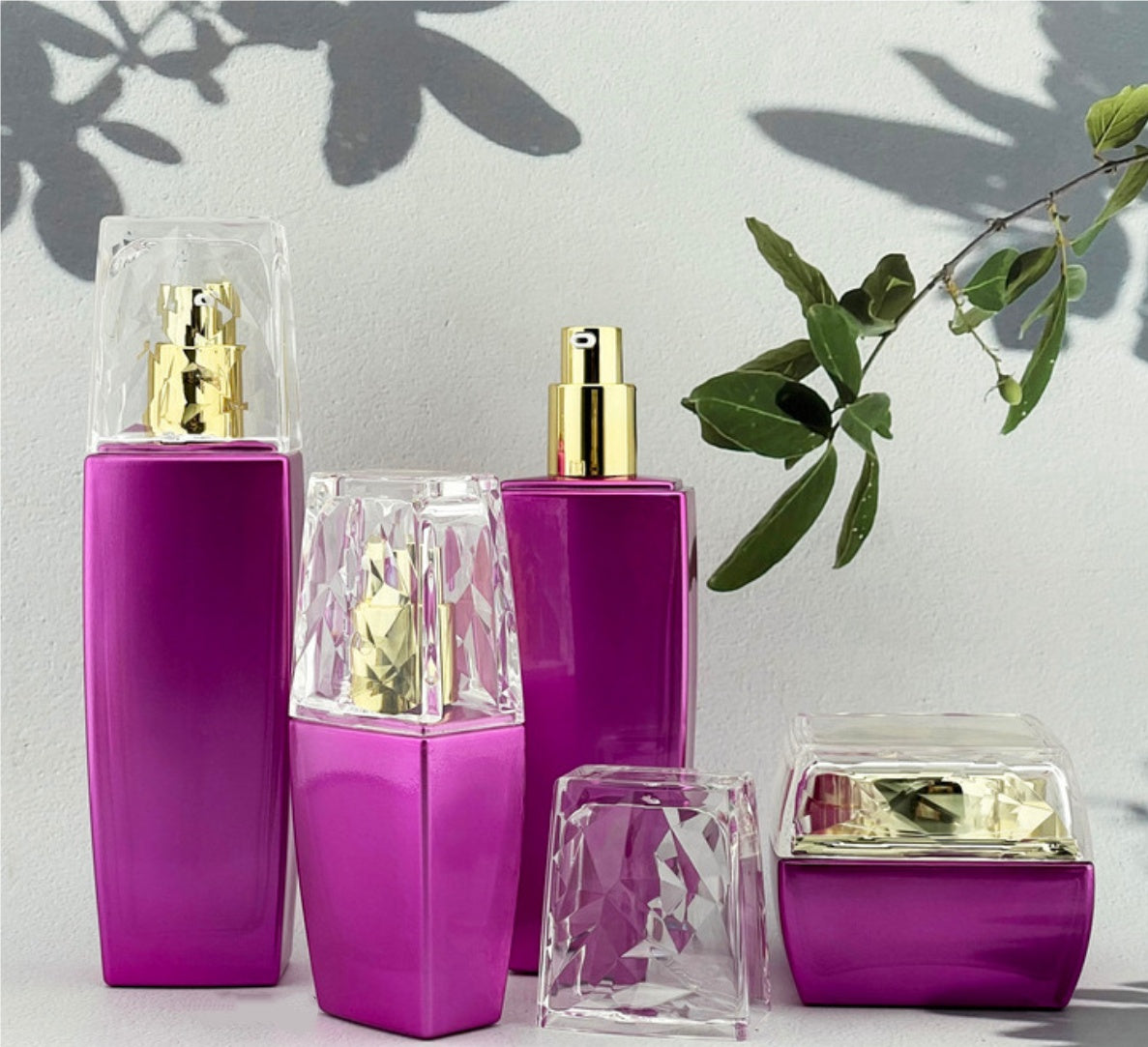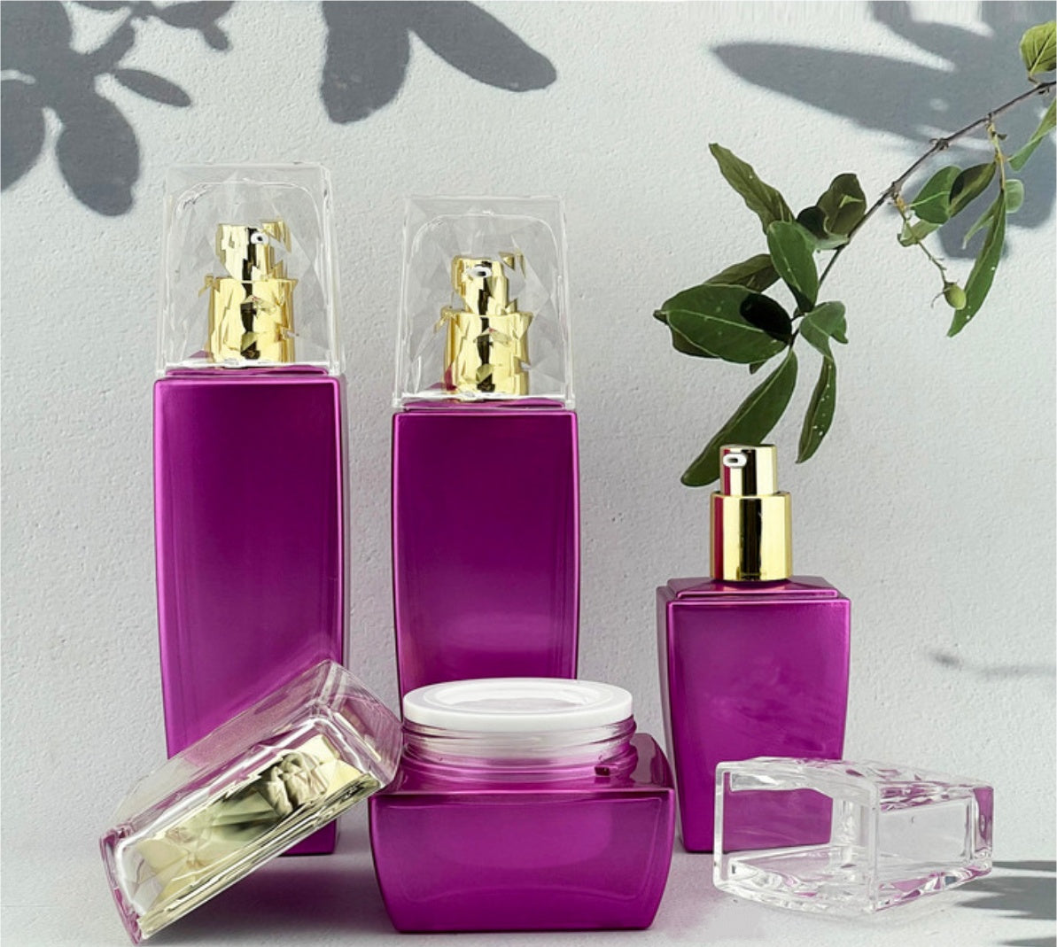 hot selling luxury empty square cream jar glass lotion pump bottles cosmetic package