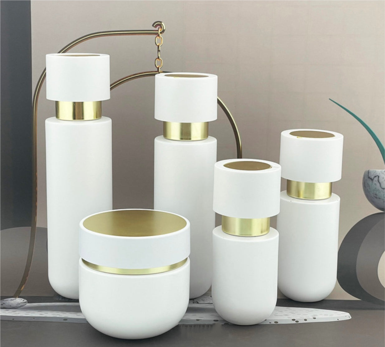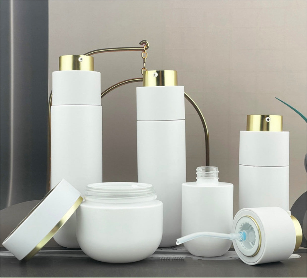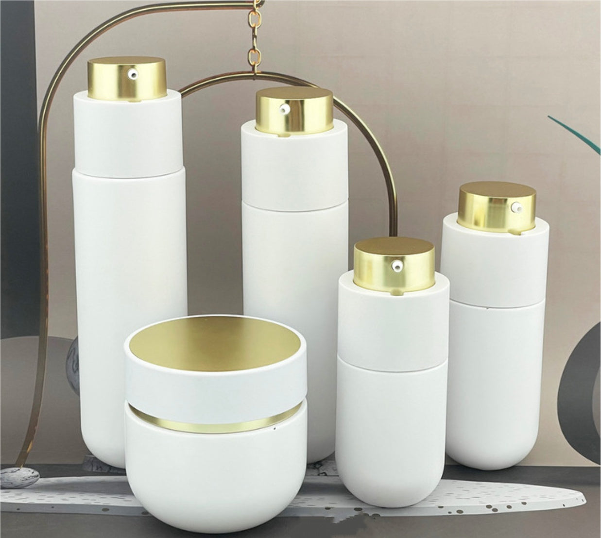 uxury empty round white glass cream jar with gold lid lotion pump bottles cosmetic glass package wholesale 30g 50g 100g 30ml 50ml 100ml 120ml
